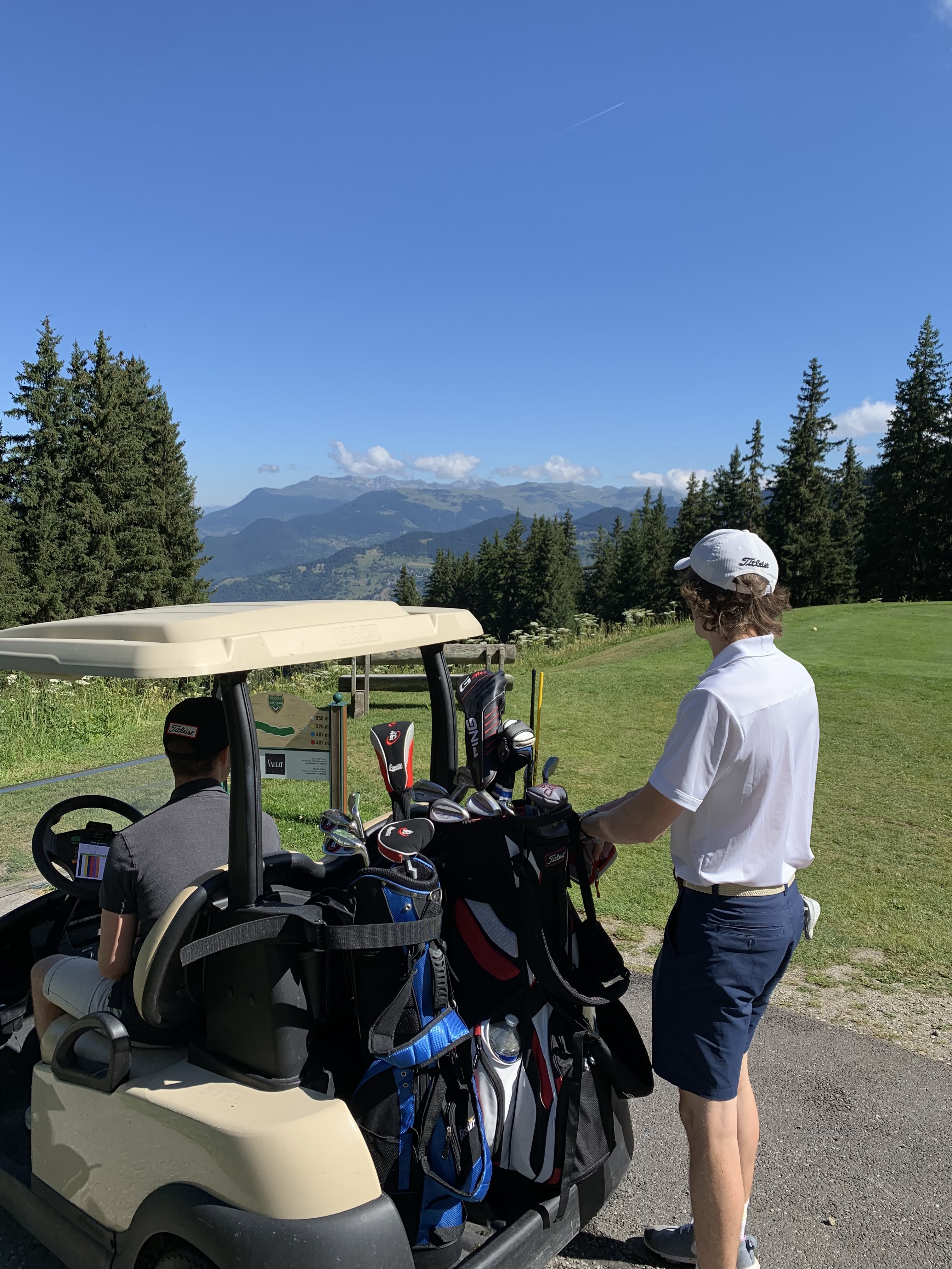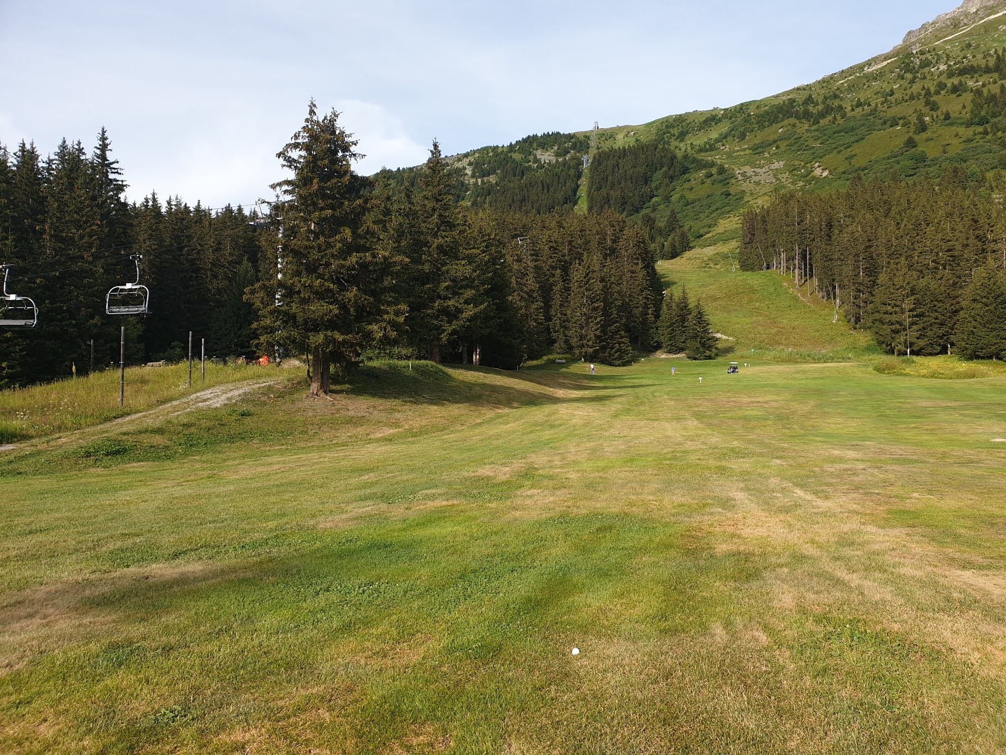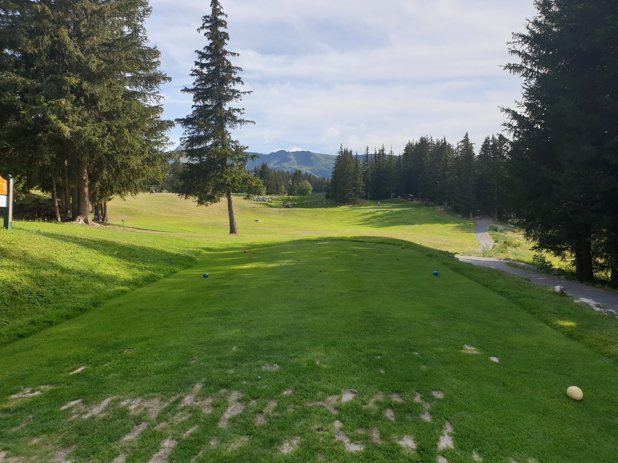 Quelle belle expérience ! Je le pensais difficile avec le relief et bien il n'en était rien. Soyons prudent et humble comme toujours devant cette petite balle blanche. Jouez en priorité des fers pour plus de précisions lorsque vous êtes entre les arbres et au retour lâchez vous ! Avec la voiturette, c'était du luxe, nous aurions pu le faire avec le sac sur le dos et du courage. Magnifique par cours, très vert en cette période estivale. Des greens et des départ de grande qualité. Enfin des pitchs relevés sur chaque green. En montagne il y a du relief et là on en a comme il faut jusqu'à vous obliger à faire un pause et contempler la vallée et les montagnes. Les balles gagnent quels mètres voire plus en raison de l'altitude. Dire que leur trou signature est le 9. A vrai dire, ils ont tous un point de vue remarquable. Et dire qu'en hiver la neige cache ce golf et que des milliers de skieurs passent dessus sans le savoir !
