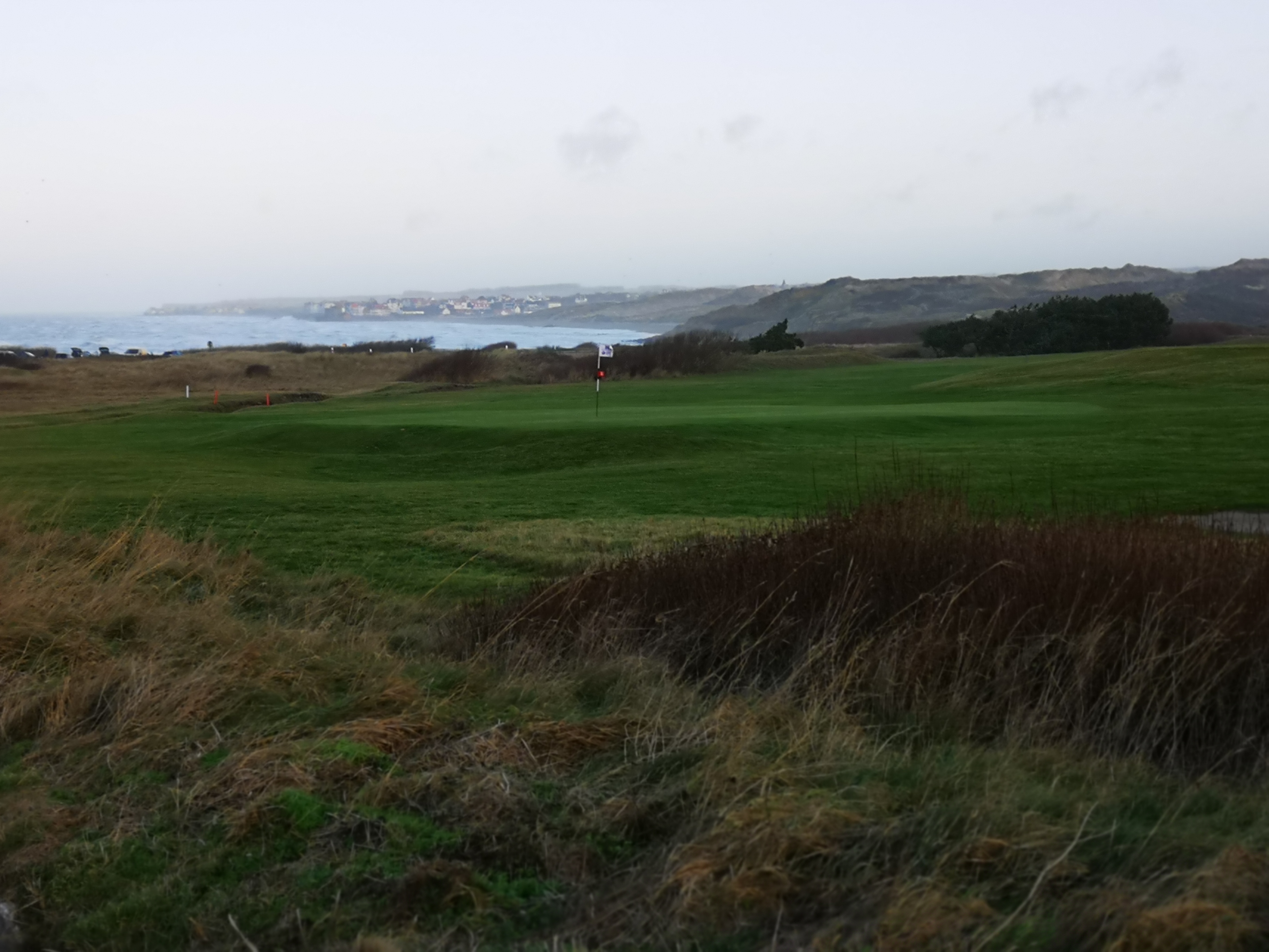 Ce pourrait être un joli parcours de golf, mais il pleuvait si fort que je ne pouvais pas voir le parcours, avec une vue magnifique sur la mer.