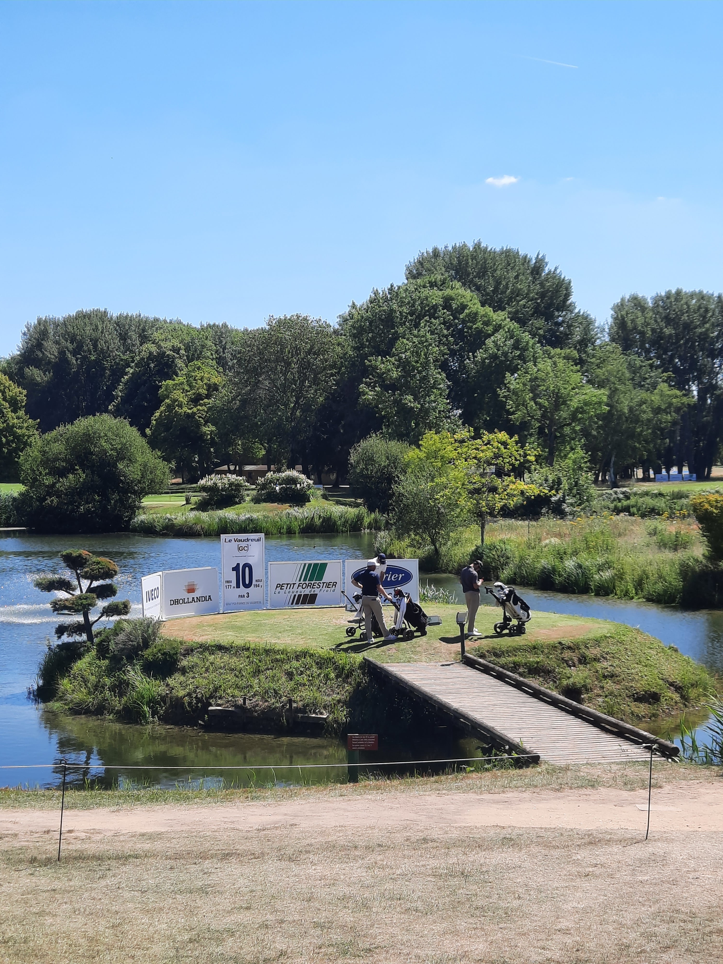 Très déçu, je n'y avais pas joué depuis plus 8 ans et j'ai participé, le we dernier (28/08/2016), au DEFIT où nous étions censés jouer dans les mêmes conditions que les pros du Challenge Tour. Très brièvement : - green's peu roulants mais surtout à la roule différente d'un trou à l'autre - fairways brulés sur une grande partie du parcours - 5h40 de jeu parce que devant nous 2 voiturettes (membres) ! sisi en compétition. Aucune régulation de l'arbitre en dépit des embouteillages monstres: attente à chaque coup pendant 13 trous !!! 17 min d'attente à 1 trou (montre en main)... - pas de commissaire de jeu Ensuite : - Tirage au sort réalisé en catimi...et comme par hasard les 2 gagnants sont membres du Vaudreuil... (ndlr: c'est pas nouveau dans le monde du golf mais je m'attendais à mieux pour un golf de cette renommée.) - Et pour couronner le tout, une des nanas (des voiturettes) qui termine 3ème...après avoir emmerdé tout le monde pendant 18 trous... Pour terminer, le parcours et son environnement sont superbes...à l'ouest de Paris, rien de nouveau mais n'y aller qu'en mode touriste...sauf si vous êtes déjà membre du Vaudreuil visiblement !