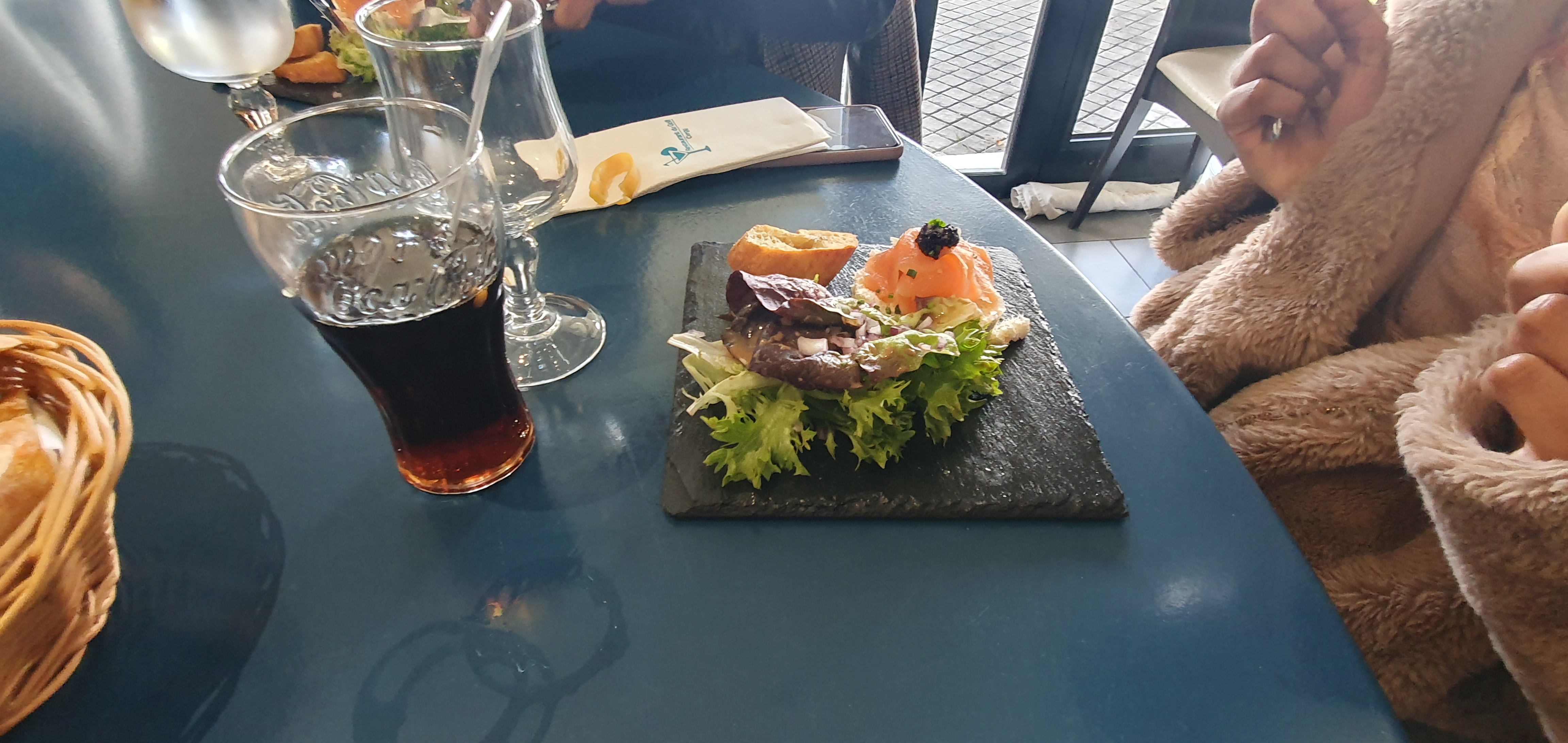 Un peu glagla. Chauffage un peu bas. Une précision c'était un repas de groupe. Un service au top. Un peu d'attente entre les plats. Pour le reste tout est bien présenté avec une variété de mise en bouche assez goûteuse, une entrée brick et fromage croustillante et bonne, un plat poisson et légumes (bon je n'aime pas le poisson) du coup j'ai demandé que des légumes avec la sauce qui était prévue et c'était bien, un dessert au chocolat avec une glace à la vanille (très bonne). Tout ça accompagné de vin rouge ou blanc. J'ai une préférence pour le blanc qui était fruité et à bonne température. Je recommande.